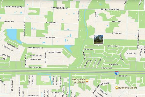 From I-75 in North Port, exit at Toledo Blade and proceed north. Left on Tropicare Blvd, left on N Chamberlain Blvd to right on Kamsler Ave. Lot is on the left six lots down from the home that is on the corner of Kamsler Ave and Lagorce St.