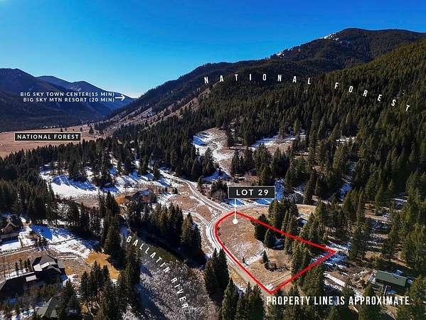 Calling all outdoor adventurers-this is Montana living at its finest! Imagine your dream home on a rare vacant parcel with unencumbered views and access to the iconic Gallatin River. Just 100 yards away, thousands of acres of Custer Gallatin National Forest await-your backyard playground for hiking, biking, backcountry exploring, and endless fresh-air therapy. Perfectly positioned in the sweet spot of the canyon, you're less than 10 minutes to the world-class amenities and slopes of Big Sky and approximately 30 minutes to the vibrant dining, culture, and charm of Bozeman. Adventure is always within reach-whether it's a day trip to Yellowstone National Park just an hour south, or seamless air travel via Bozeman Yellowstone International Airport 45 minutes north. The gentle rise of the land creates an inspired homesite opportunity-elevated just enough to capture sweeping mountain views up and down the canyon while overlooking a charming seasonal stream below. Picture expansive windows, a thoughtfully designed deck, morning coffee with river mist rising in the distance, and evenings painted in alpenglow. Cast a line. Lace up your boots. Breathe deep. This is your slice of Montana heaven-where river days, forest trails, and mountain sunsets become part of your everyday story.
