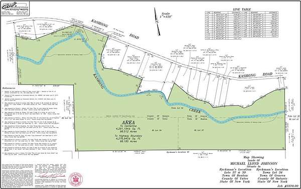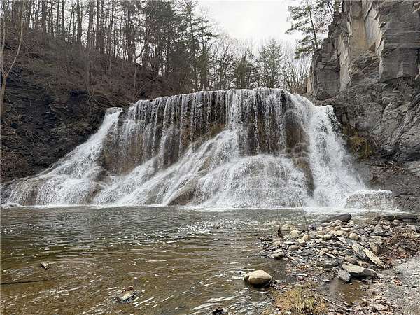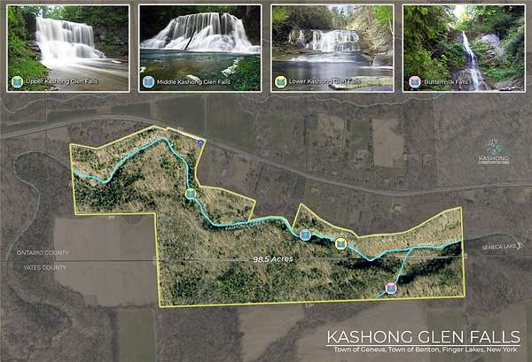 Discover a Rare Landmark Opportunity in Geneva, NY- This extraordinary 98.5-acre property presents a once-in-a-lifetime opportunity to create a remarkable landmark in the heart of New York's Finger Lakes region. Located in the Town of Geneva and Town of Benton, this site combines breathtaking natural beauty with a strategic and highly accessible location. The southern acreage is zoned to accommodate one-family and two-family dwellings, as well as cluster residential projects (with a special use permit), offering immense potential for innovative and impactful development. The property's natural features include 5,300 feet of Kashong Creek and four spectacular waterfalls-Buttermilk Falls, Upper Glen Falls, Middle Glen Falls, and Lower Glen Falls-creating an unmatched setting of serenity and charm. The Finger Lakes region is renowned for its natural beauty, vibrant culture, and accessibility, attracting over 5 million annual visitors. This property is an excellent choice for high-end development, such as luxury homes designed to fully embrace the peaceful southern acreage. Additionally, its distinctive features and location make it ideal for nonprofit organizations, a nature conservancy, or the creation of a public park to preserve its unique landscape for future generations. Whether envisioned as an elegant residential community or a cherished public amenity, this property offers a rare opportunity to leave a lasting legacy in the Finger Lakes. The beauty and uniqueness of this offering make it an unparalleled setting to bring your vision to life.