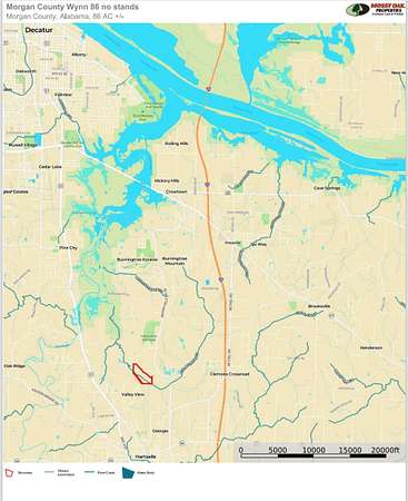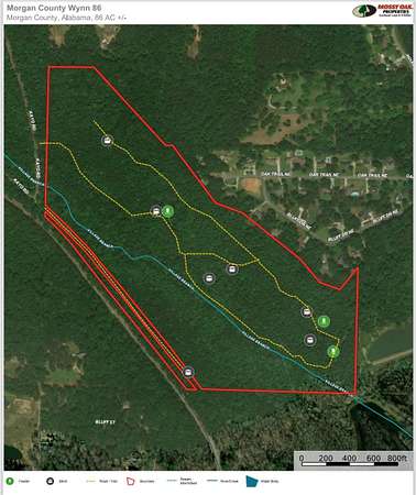This 86-acre tract offers a rare combination of hunting, recreation, and investment potential in a prime location between Hartselle and Decatur. The property is already set up for hunting with established greenfields, shooting houses, tree stands, and feeders in place. A well-developed internal road and trail system makes accessing every corner of the land easy.