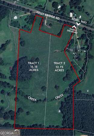 NEARLY 29 ACRES OF PRIME RESIDENTIAL AGRICULTURE LAND IN HIGHLY DESIRABLE SW DAWSON COUNTY. Welcome to a rare and valuable opportunity to own 28.93 total acres split across two adjacent tracts in Dawsonville, Georgia. This beautiful, vacant, undeveloped property is perfectly suited for a wide range of lifestyles and land-use visions under its RA (Residential Agriculture) zoning. CONFIGURATION & DEVELOPMENT POTENTIAL The property consists of Tract 1 (16.18 acres) and Tract 2 (12.75 acres), totaling 28.93 acres. The topography is rolling to hilly, with gentle terrain, sweeping open pasture, and scenic views. This land is an exceptional canvas for your vision, including a single-family residence, family compound, hobby farm, or other agricultural endeavor consistent with RA zoning. MULTI-GENERATIONAL FLEXIBILITY - Each tract is eligible for the family density exception, offering additional flexibility for multi-generational living. Further subdivision would require rezoning, helping preserve the privacy and spacious feel of the area. DEED RESTRICTIONS - Restrictive covenants are in place to help maintain quality and protect the rural character. These covenants prohibit the raising of swine, commercial poultry houses, and mobile homes. NATURAL FEATURES - A meandering creek runs along the rear of the property, with ample open pastureland and a small barn already in place. Yellow Creek Tributary No. 2 runs across the back portion of the land. A portion of the property lies within a designated flood hazard area, and the property is subject to applicable stream buffer requirements. ACCESS - Access to the property is via a gated access road located next to Rebel Road in Dawsonville. The interior access is via raw, undeveloped land. Land can be uneven; in wet conditions, a truck or 4WD vehicle is recommended. Gate code and access instructions will be provided by the listing agent. COMMUNITY & INVESTMENT - Located in Southwest Dawson County, this property offers the perfect blend of rural tranquility and accessibility. Enjoy peaceful country living with convenient access to Dawsonville, area amenities, and major corridors. The setting makes this an attractive option for a private estate, recreational retreat, or long-term land investment. The seller will not sell individual tracts - buyer must purchase the entire 28.93-acre assemblage. Nearly 29 acres, two tracts, multiple possibilities - bring your plans and create your ideal Dawson County retreat.