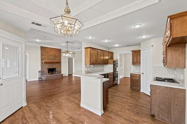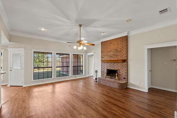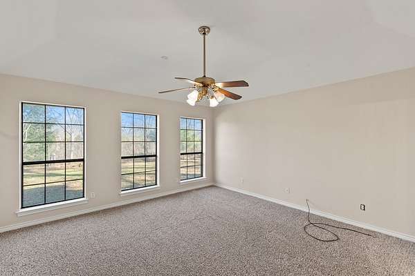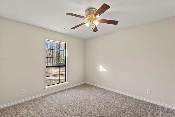 Spacious 4-bedroom, 3 full bath home with attached two-car garage offering 2,065 sq ft of living space, plus a detached "man cave" - guest quarters featuring approximately 280 sq ft of finished living area with kitchenette and full bath, along with an attached insulated one-car garage, all situated on 8 acres in Kaufman County--approximately 55 minutes from Dallas. Home features a desirable split-bedroom floor plan with tall ceilings, crown molding, and recessed lighting throughout. Interior has been freshly painted, including trim and doors, and new carpet has been installed. Spacious living area showcases large windows for natural light and a brick wood-burning fireplace. The kitchen offers a walk-in pantry, double ovens, and an electric cooktop, providing great functionality for everyday living and entertaining. Property offers a circular driveway and is located on a one-way in, one-way out street, providing added privacy and minimal through traffic. A chain-link fenced backyard is ideal for children and pets, along with perimeter barbed wire fencing. Custom closet systems are installed in each bedroom for added storage and organization. Additional features include a mosquito misting system and generator, both conveying with the property. Conveniently located just 10 minutes from Kings Creek Country Club, 13 minutes to Spring Market by Brookshire's, and a short drive to Cedar Creek Lake, known for fishing and watersports. A unique opportunity to enjoy privacy, acreage, and flexible living spaces just outside the city.