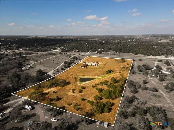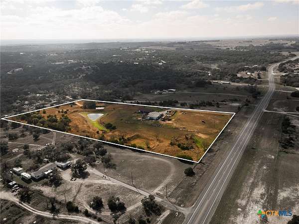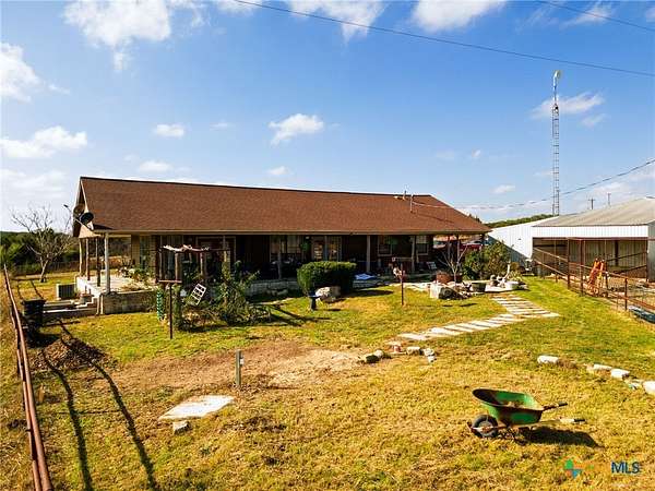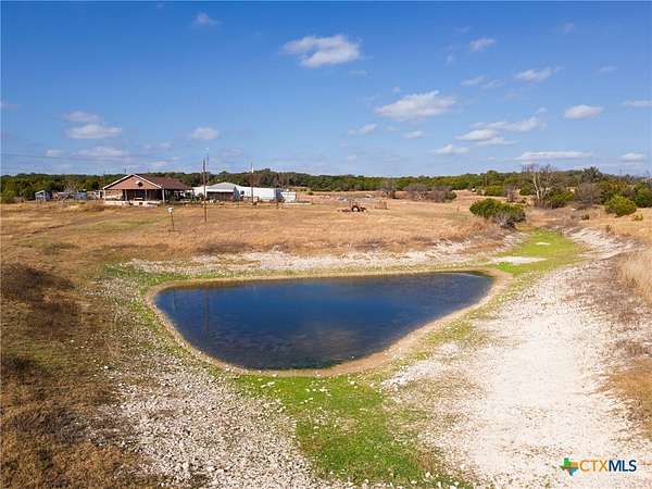 This beautiful 2-bedroom, 1-bath farmhouse-style home features a charming wraparound porch and sits on 9.21 fully fenced acres with three ponds. The property includes an approximately 2,000 sq. ft. shop with a half bath and a 2-bedroom, 1-bath apartment, offering excellent additional living space or guest accommodations. Enjoy peaceful country living with the convenience of being just minutes from Lampasas. Now offering $5,000 in Seller Concessions or This house comes with a REDUCED RATE as low as 5.625% (APR 5.921%) as of 01/16/2026 through List & Lock(TM). This is a seller paid rate-buydown that reduces the buyer's interest rate and monthly payment. Terms apply, see disclosures for more information.