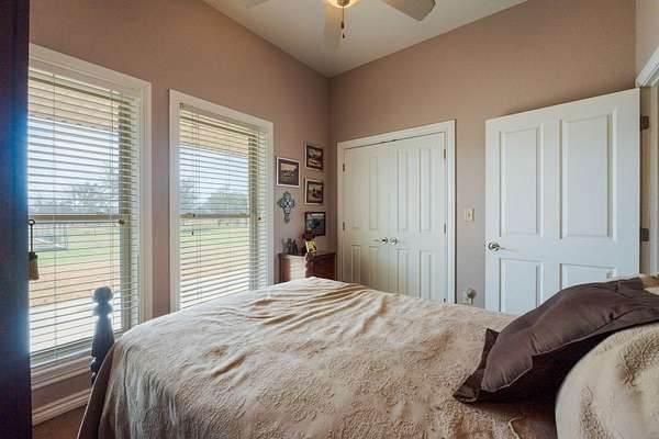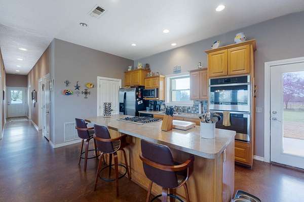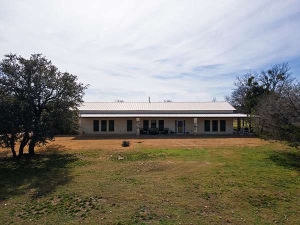 Nestled atop a picturesque hill, this 3-bedroom, 2-bathroom home offers 2,214+/- sqft of living space, and is surrounded by spectacular views. The Austin Stone and All-Metal construction creates a unique, low-maintenance home, designed to showcase its stunning surroundings. Built for comfort and relaxation, it features wraparound porches that invite you to take in the natural beauty of the land, watch deer graze, catching a sunset or sunrise, or simply enjoying the serene atmosphere. A 2000 sqft Workshop Fully equipped with roll-up and walk-through doors, is perfect for all your hobbies and projects, Deer-Proof Garden Area, Cement-Floored Dog Kennel, Various Pens and Outbuildings and Fully Fenced, with good fencing around the entire perimeter. Whether you're looking for a peaceful retreat or a property with ample space for projects and hobbies, this property has it all. Don't miss your chance to own this 16.7-acre paradise!