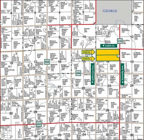 149.58 acres, m/l, located 1 1/2 miles south of George, Iowa on the west side of Kennedy Ave. This gently sloping farm has 143.07 FSA/Eff. crop acres with a CSR2 of 83.20. Large tract of quality Lyon County farmland adjacent to Cooperative Farmers Elevator in George, Iowa. Parcel 2 of 2. See additional listing. AUCTION TO BE HELD Thursday, November 6, 2025, at 10:00 a.m. Virtual Live Auction --ONLINE ONLY-- ONLINE BIDDING: bid.hertz.ag REGISTERED BIDDERS will receive their Bid # and additional property information via e-mail within 48 hours prior to auction. Method of Sale Parcels will be offered by the Choice and Privilege Sale method with the choice to the high bidder to take one or both parcels. Should the high bidder not select both parcels, the remaining parcel will be offered with another round of bidding.