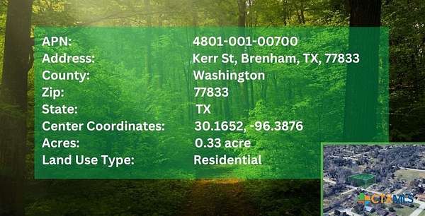 Est $393/moLocated in the heart of Brenham, TX, this 0.33-acre residential lot on Kerr St offers a fantastic opportunity to build your dream home or invest in a growing community. With close proximity to city parks, local attractions, and essential amenities, this property combines convenience with small-town charm. Don't miss out on this well-located residential lot in Brenham, TX. Contact us today to learn more or schedule a site visit.