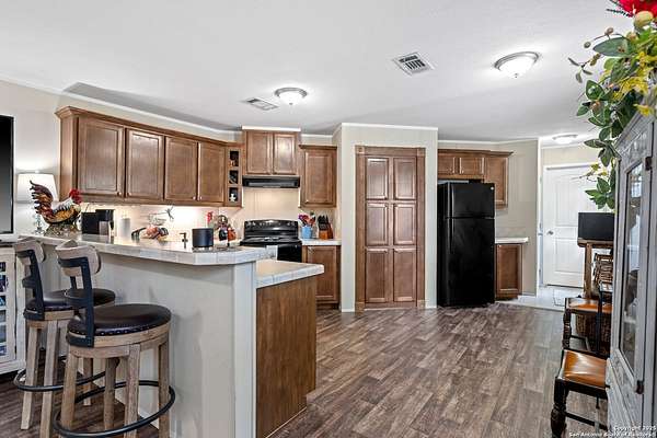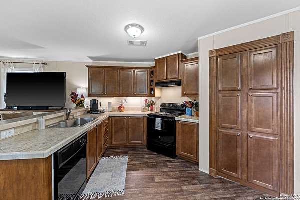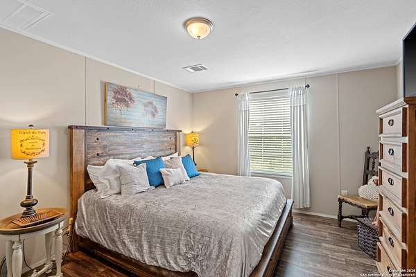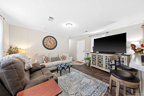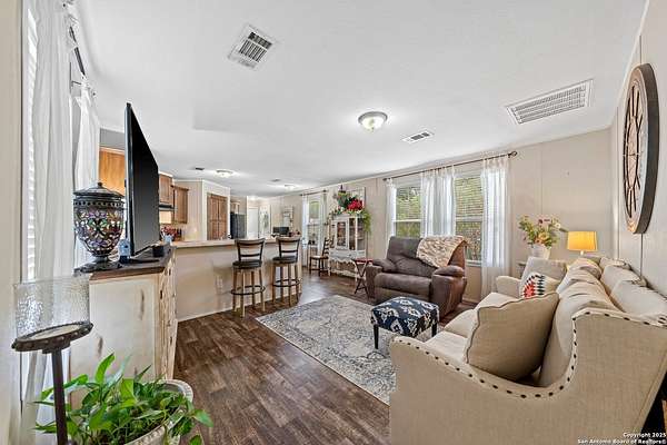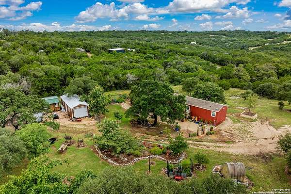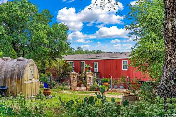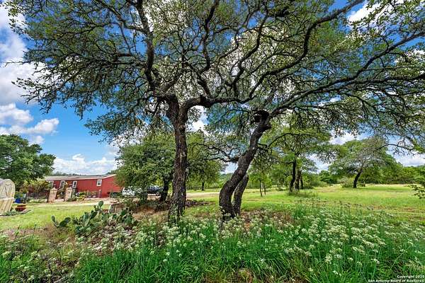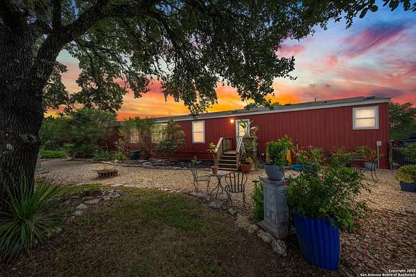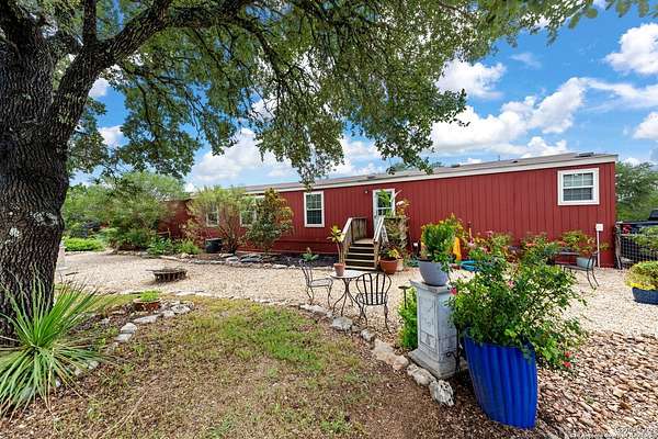 Imagine basking in the glow of breathtaking sunsets from your very own 5-acre slice of the Texas Hill Country, located just outside the charming town of Kerrville. This property offers the perfect blend of tranquil country living with easy access to all the conveniences of city life. As you enter through the electric gate, you're greeted by miles of stunning views and gently rolling hills, with majestic oak trees dotting the landscape, creating a serene and picturesque setting. The nearly 1500-square-foot, anchored manufactured home is a true find, thoughtfully designed to make the most of its peaceful surroundings. Inside, the home features 3 spacious bedrooms, 2 full baths, and a convenient laundry room/pantry. Fresh, like-new finishes throughout lend a modern, welcoming feel while maintaining a comfortable, open-concept design ideal for entertaining family and friends. The well-appointed kitchen is perfect for any chef, offering a great balance of function and style, with views that keep you connected to guests in the living area while preparing meals. At one end of the home, the primary bedroom serves as a peaceful retreat, providing privacy and a relaxing atmosphere. Two guest bedrooms and a full bath round out the floor plan, offering comfort and space for family or visitors. For those who need extra storage, the property offers ample space for tools and equipment, ensuring everything has a place. Located just 15 minutes from downtown Kerrville, you'll enjoy the best of both worlds-peaceful, rural living with easy access to shopping, dining, and entertainment. Plus, the San Antonio International Airport is just an hour away, making travel a breeze. This property offers the ideal opportunity to embrace the beauty of the Hill Country while still being close to everything you need. Don't miss your chance to own a piece of this scenic paradise.