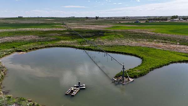 The property has the two irrigation pivots. The FRICO/Milton is ran through ditched into an irrigation pond and then is pumped through the pivots. The site has power and is ready to go.