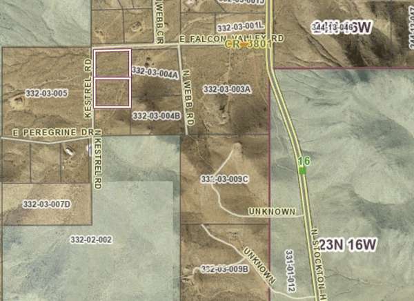 Stockton Hill north to past MM16. Left on Falcon Valley Rd to left on Kestrel Rd. Property is on the left