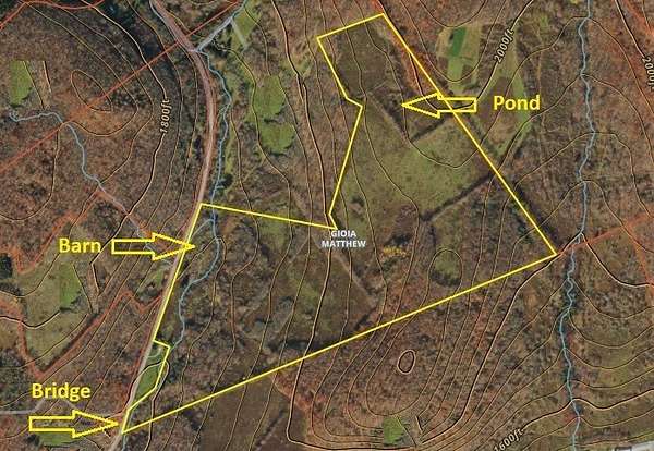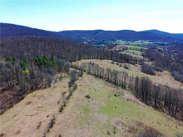 Located just 2 hours and 45 minutes from the George Washington Bridge in NY City, this beautiful Catskill Mountain property located in Delaware County has it all. Once a productive mountain farm a very long time ago, this ancient and magical place features 120 acres with stunning long distance views, a clean running trout stream, wild apple orchards, beautiful mixed hardwood forest and several old agricultural fields separated by stone walls and hedgerows. There are several productive fresh water springs throughout the property and a small spring fed pond holding fish. Between the road and the creek, there is a 80'x24' equipment barn in usable condition but needs attention, and the remnants of the old stone foundation for the farm. There is a drilled and capped water well currently in the vicinity of the old foundation that is likely still useable. The balance of the land is easily accessed over a recently rebuilt private bridge suitable for a driveway. There are several excellent sites to build a new home or cabin on either side of the creek. The property sits on a quiet maintained dirt and gravel road with a few good year round and seasonal neighbors for peace of mind, although the location is seemingly remote and away from it all. The land is generally rolling and slightly sloped with several flat areas that would make good options for building. Large whitetail deer and a good population of wild turkey are always present, with bald eagles, hawks and owls frequently seen here. This can be your private wildlife sanctuary or a good option for hunting. Bring you RV Camper or build your private retreat and enjoy all the peace and nature that will surround you. Nevertheless, a true year round destination between Stamford and Delhi with the State University College in Delhi, several nearby Catskill Mountain ski resorts, and Public State Lands for hiking and outdoor recreation of all types. All of this and centrally located to the vibrant arts and cultural community of the Catskill Region.