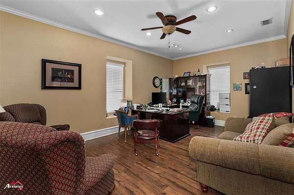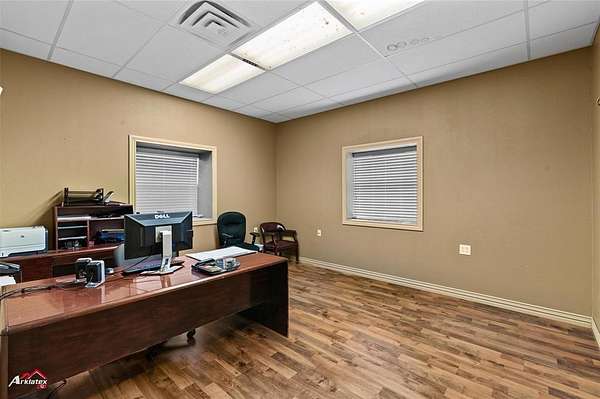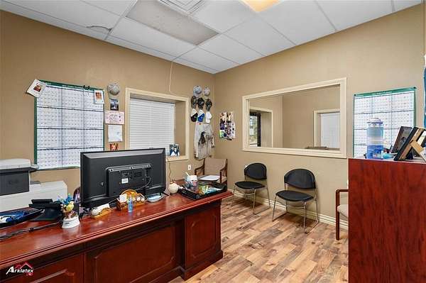 Exceptional opportunity to own a versatile office, shop, warehouse, and service yard facilitysituated on 4.869 acres just 4 miles southeast of Kilgore. This multi-use property, located outside city limits, offers an ideal setup for various business operations. The Primary Building (back right) is an 11,200 SF metal warehouse with 28-30ft. eave heights, featuring 2 oversized 14' overhead doors, a double sliding door, and 2 walk-in doors. Two offices and a restroom were added within the last 10 years for added convenience. Be sure to check out the 30x24 ft. RV warehouse space within this building! The Office and Shop Building (front left) boasts 6,500 SF of extensively remodeled space, including 11 offices, 3 bathrooms, a conference room, a reception area, and a kitchen. Two brand-new AC units, a data line, and a roof replaced 7 years ago enhance the value. The building offers flexible eave heights ranging from 18'-20' down to 14'-16', with room to add another bathroom to the shop. An additional Office and Residence spans 1,248 SF, offering 2 bedrooms, 1 bathroom, a kitchen, and a carport, ready for remodeling to suit your needs. Supporting facilities include a 900 SF wash bay behind the office shop building, a gravel service yard and drives, and a pipe entrance with a gate and cattleguard. The property is partially fenced for added security and utility. This property is a rare find, offering a mix of warehouse, office, and residential potential on a spacious lot. Whether for business operations, storage, or expansion, this property is ready to meet your needs.