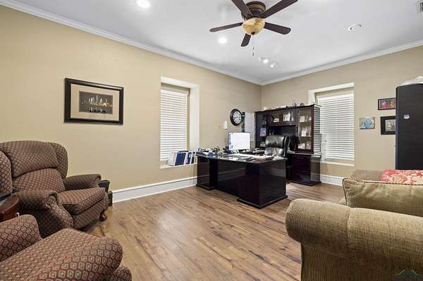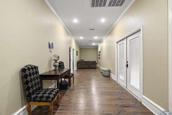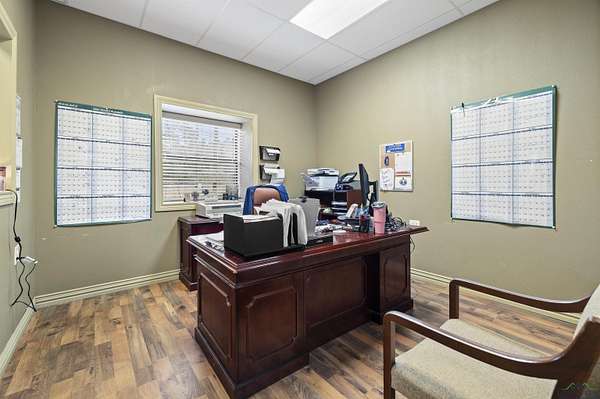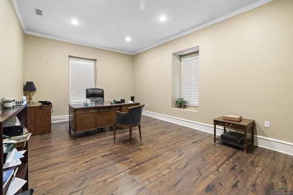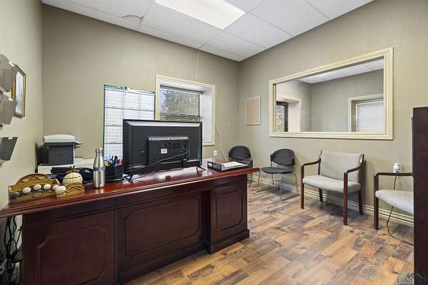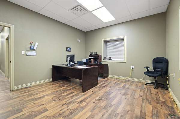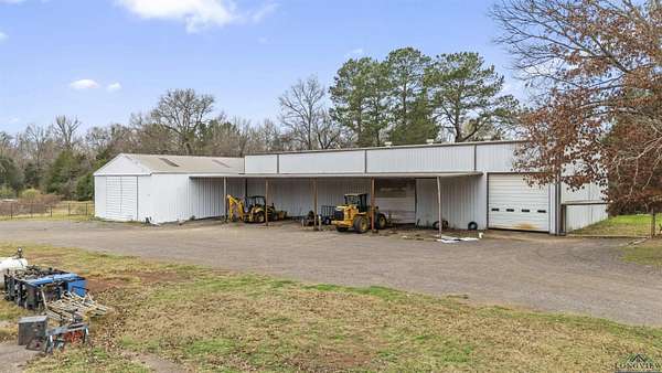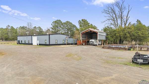 Exceptional opportunity to own a versatile office, shop, warehouse, and service yard facility with stabilized yard situated on 4.869 acres just 4 miles southeast of Kilgore. This multi-use property, located outside city limits, offers an ideal setup for various business operations. The Primary Building (back right) is an 11,200 SF metal warehouse with 28-30 ft. eave heights, featuring 2 oversized 14' overhead doors, a double sliding door, and 2 walk-in doors. Two offices and a restroom were added within the last 10 years for added convenience. Be sure to check out the 30x24 ft. RV warehouse space within this building! The Office/Shop Building (front left) boasts 6,500 SF of extensively remodeled space, with fresh exterior paint including 11 offices, 3 bathrooms, a conference room, a reception area, and a kitchen. Two brand-new A/C units, a data line, and a roof replaced 7 years ago enhance the value. The building offers flexible eave heights ranging from 18'-20' down to 14'-16', with room to add another bathroom to the shop. Supporting facilities include a 900 SF wash bay behind the office/shop building, a gravel service yard and drives, and a pipe entrance with a gate andional Office/Residence spans 1,248 SF, offering 2 bedrooms, 1 bathroom, a kitchen, and a carport, ready for remodeling to suit your needs. cattle guard. The property is partially fenced for added security and utility. This property is a rare find, offering a mix of warehouse, office, and residential potential on a spacious lot. Whether for business operations, storage, or expansion, this property is ready to meet your needs.
