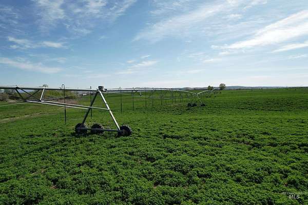 Est $5,874/moThis property offers an ideal setting for a farm or ranch, complete with pivot, wheel line, and flood irrigation via by gated pipe. Currently leased for the 2025 season. Water is supplied via the Owyhee Irrigation District. A drainage ditch traverses the property, accompanied by a pond that enriches the habitat for birds and other wildlife. The gently undulating terrain not only provides stunning views but also lends distinctive character to the property.