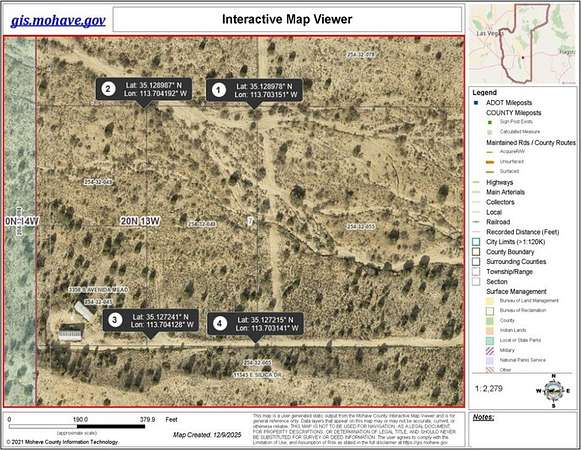From Kingman, AZ. Heading east on I40, take Hwy 93 exit going south. Turn right onto Old Hwy 93. On the right, you will come to a road marked Powerline/E. Silica, turn right, continue straight until you reach a fork in the road stay straight. You will come upon a road leading to the west (left). Turn left. Property is on the right hand corner of the next road. There are a few pink ribbons marking the property. Coordinates in photos. All-Wheel Drive recommended.