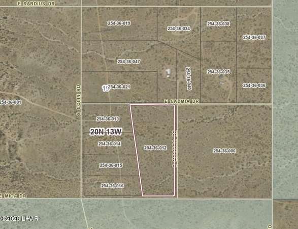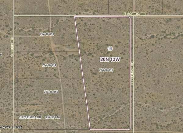 From Kingman: Hwy 93 N, R on Co Hwy 193, L on E Rock Crystal. Follow Quartz to Pinto Rd. GPS ''11877 E Cadmia Dr''; parcel is at road's end on left. Search APN 254-36-012 on GIS for boundaries. No sign.