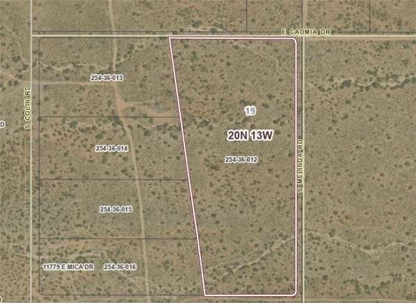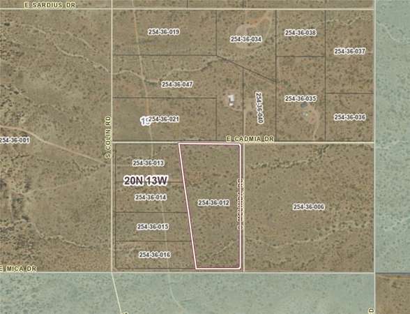 From Kingman, head North on Hwy 93 for approx 25 miles, turn Right onto Co Hwy 193, Left onto E Rock Crystal Dr. Continue onto Quartz Dr, turn Left to stay on Quartz Dr, continue onto Pinto Rd. To locate via GPS, type in "11877 E Cadmia Drive, Kingman" as a reference point. Once you reach the end of this road, this parcel for sale is on your left. Use the Mohave County GIS map for reference by searching APN 254-36-012 to see parcel boundaries. Vacant land, no sign on property.