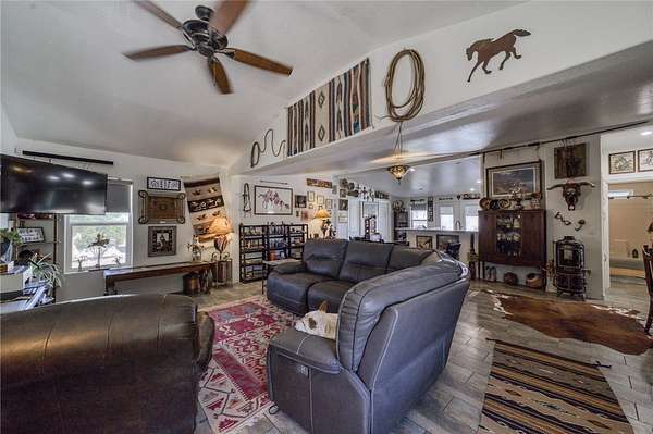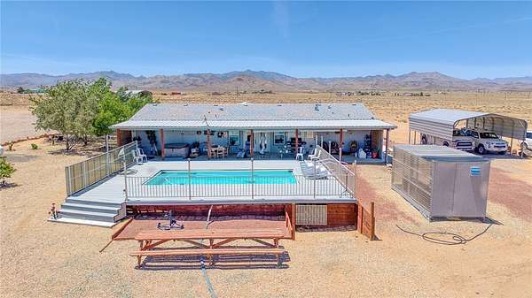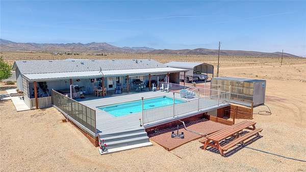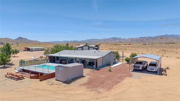 FINAL Price reduction !!! Welcome to 3890 E Calle Lucero in beautiful Kingman Arizona. Experience the ultimate blend of rural tranquility of this 81+ acre ranch! With an additional and negotiable 30 acres in the back to expand your estate to a total of 111 acres ideal for development dreams. This beautifully maintained 2019 Cavco build offers a split floor plan with 3 bedrooms, 2 bathrooms, spanning a total of 1,749 sq ft of comfortable living space. You'll love the open-concept kitchen and casual dining, perfect for entertaining with an seamless flow between indoor and outdoor living. Enjoy front and back landscaping including covered front and back porches, a spacious back deck, a hot tub and an above-ground pool with a surrounding deck, all set against the backdrop of breathtaking panoramic mountain views and a flourishing orchard. This property is fully fenced, cross-fenced and well-equipped for both livestock, recreation or further development opportunities! Horse lovers will appreciate the competition-size arena that s been de-rocked and prepped, while outdoor enthusiasts will find ample space for ATVs, RVs, and more. There's plenty of storage with a Connex container and lean-to shed/shop, two oversized carports for vehicles/RVs or motorhomes, two full RV hookups, a 30x40 detached garage with a bathroom, a utility shed and additional sheds currently used as shelter for animals. The property is dotted with mature shade trees, a 120-tree pomegranate orchard and a variety of fruit trees, all supported by a drip irrigation system. A private water well and 5,000-gallon storage tank ensures a steady, self-sufficient water supply. Situated in the Sunny Highlands Estates subdivision, you're just 17 miles from central Kingman off N Stockton Hill Rd with direct access to shopping, dining, hospitals, and more. This astounding estate backs directly against State and BLM land on two sides giving you uninterrupted mountain views, privacy and vast open skies. If you ve been searching for a place where you can truly live, work, and play this is it! *Seller is a licensed Arizona Realtor*