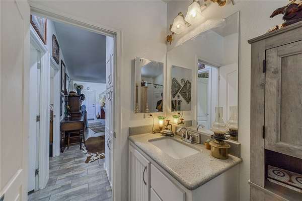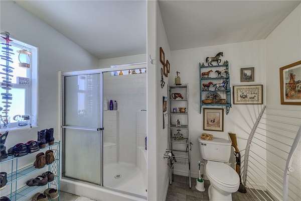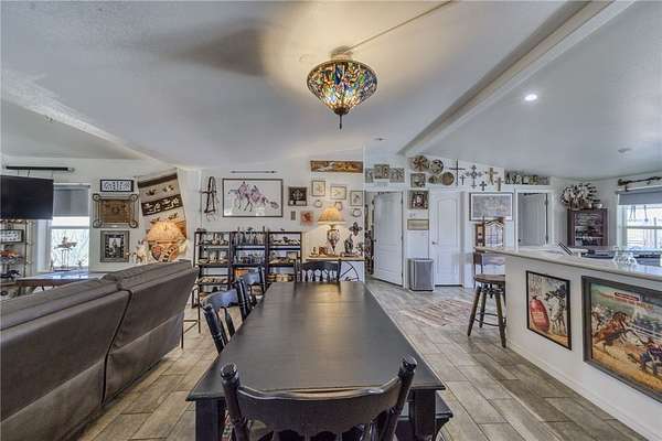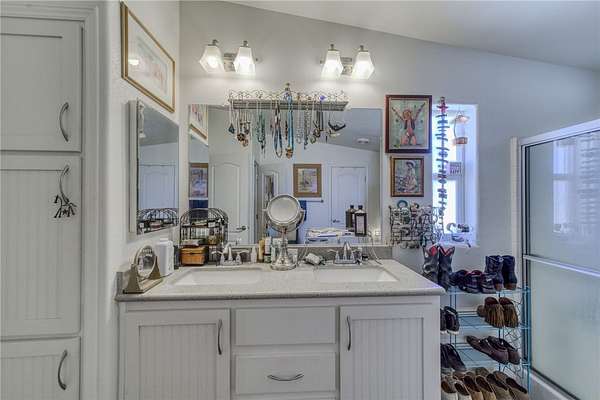 - Breakfast Bar, Ceiling Fans, Dining Area, Dual Sinks, Main Level Primary, Open Floorplan, Pantry, Primary Suite, Programmable Thermostat, Separate Shower, Shower Only, Solid Surface Counters, Utility Room, Vaulted Ceilings, Walk In Closets, Window Treatments