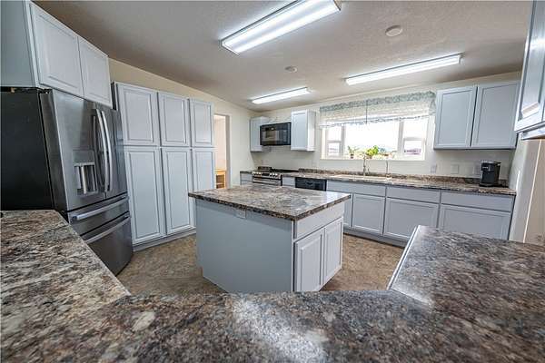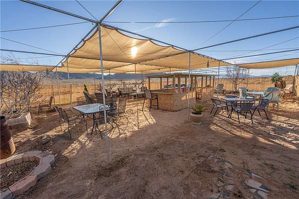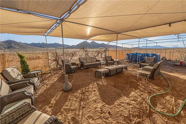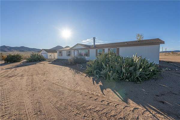 Beautiful 4-bedroom, 2-bath residence situated on a fully fenced 5-acre corner lot, complete with underground utilities and a private electric entry gate. Freshly painted inside and out, the home features a chef's kitchen highlighted by a large center island, custom cabinetry, upgraded appliances, and an additional oven-perfect for entertaining and everyday living. The spacious layout includes a generous family/dining area as well as a separate living room with a charming wood-burning fireplace. Recent upgrades include an improved HVAC system for year-round comfort. A detached 2-car garage offers 220 power, built-in shelving, and a new garage door opener. The property also includes a shaded, fenced BBQ area with an above-ground pool, mature fruit trees, a 40-foot Conex container, and an impressive 1,400 sq. ft. climate-controlled outbuilding-ideal for a home-based business, workshop, or additional storage.