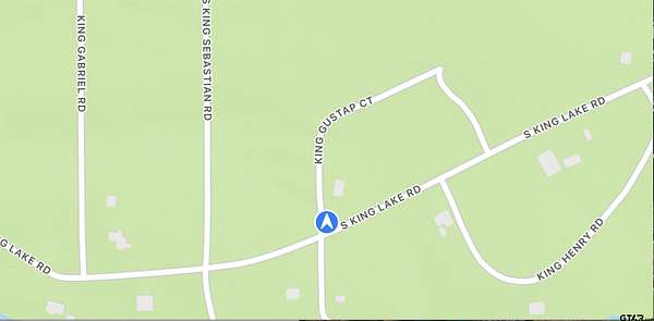 From Kings Country Gate, go through on Kings Country Blvd turn right at first stop sign on to S King Lake Drive Corner of King Gustaf and S KIng Lake Dr.