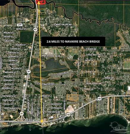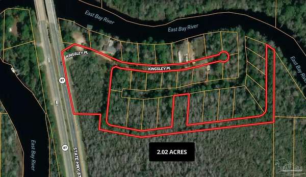 Presenting an exceptional opportunity to own 2.02 acres of prime waterfront land in Navarre. This property offers significant potential for development, featuring approximately 1 acre of buildable land suitable for a custom single family residence. Ideally located just off Highway 87, the site provides both convenience and privacy, with the East boat launch located directly across the highway. the property boast 47 feet of East Bay frontage and an additional 0.25 acre parcel with 75 feet of river frontage, offering expansive views of the East Bay River. Zoned R1M (Mixed Residential), this parcel allows for multiple residential development possibilities. The property is situated within flood zone AE with an 8-foot elevation, providing additional security and value. Located only 5 miles from Navarre Beach, residents can enjoy close proximity to the area's renowned white sand beaches, shopping and dining, while maintaining a peaceful and natural setting. This is a rare opportunity to acquire a waterfront parcel in one of Navarre's most desirable and rapidly growing areas- the perfect setting for your home or investment.