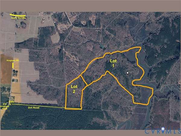 From Richmond I-64East to Exit 220 (Rt 33) Right on Rt 14 Buena Vista Rd, right on 605 Plain View, left on Kingtown and access road with gate is across the street from 618 Kingtown Road Shacklefords Va 23156.