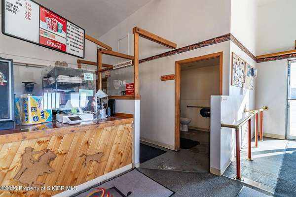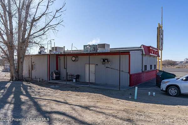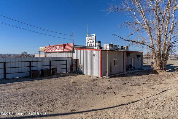 Est $3,525/mo3ac in Kirtland city limits, includes a 2100 sqft restaurant that has a long term tenant, that rents for $3500, a manufactured home that rents for a $1000 a month .It has 350 ft of US Hwy 64 frontage and plenty of room to develop into more retail space, trailer park or ???Buyer to verify square footage, age and taxes.