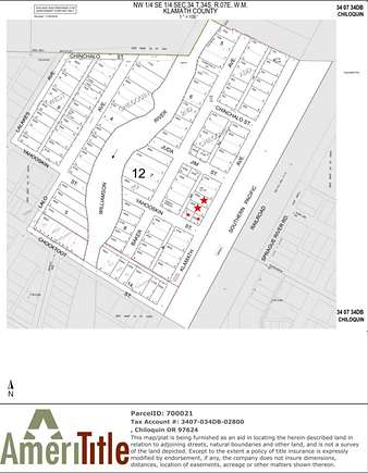 Est $312/mo0.39 acres of Commercial Property for sale. Light industrial zoning. Buyers should call Klamath County planning department to confirm zoning, and usage. Chiloquin offers many stores and restaurants in rural community. Not far from attractions such as the Williamson River, sprague River, Train Mountain, Crater Lake and other Southern Oregon attractions. Chiloquin is approximately 25miles north around the Klamath Lake from Klamath Falls.
