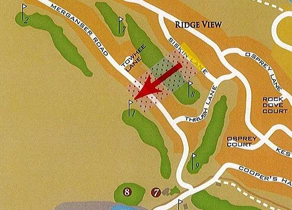 Left on Merganser, past the practice putting green. The site is on the left before Towhee.