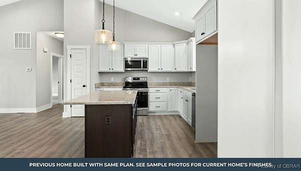 - Bedroom On Main Level, Cathedral Ceilings, Ceiling Fans, Granite Counters, High Ceilings, Kitchen Island, Main Level Primary, Recessed Lighting, Walk In Closets