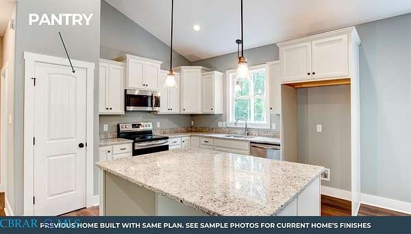 - Bath In Primary Bedroom, Bedroom On Main Level, Dining Area, Granite Counters, High Ceilings, Kitchen Island, Main Level Primary, Pantry, Recessed Lighting, Walk In Closets