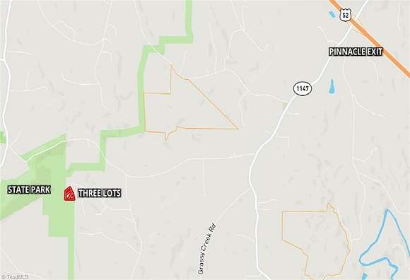 From Hwy 52 at Pinnacle Exit, go West, go 3.94 miles on Perch Road, and turn right to Stoney Ridge Rd. Go 2.8 miles to Grassy Creek Rd, and 1.4 miles to the right to Knollcrest Drive. Go to end to third cul-da -sack three joining lots on the right,