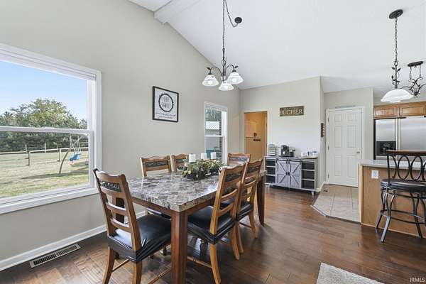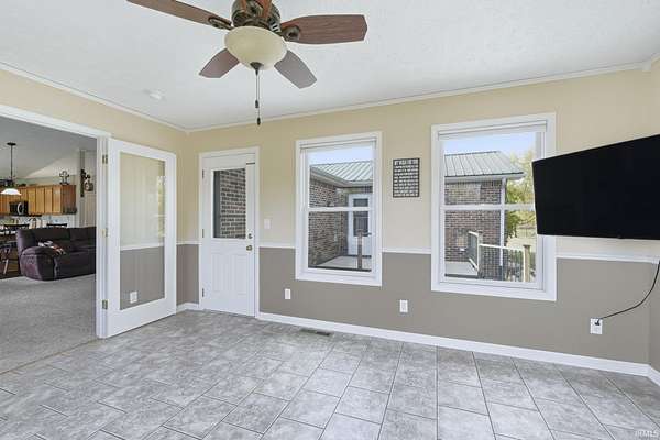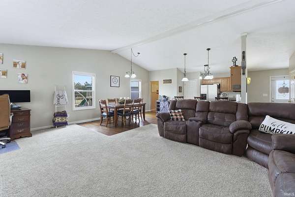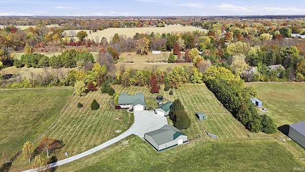 Escape to your own private retreat on 9.5 acres of Indiana countryside! 3-bedroom, 2-bath brick ranch plus two large barns include a 50-amp RV hookup! Over 2,000 square feet of open-concept living space welcomes you with vaulted ceilings, beautiful nailed-down wood floors installed in 2019, a four-seasons room, and a spacious primary suite with direct access to the back deck. The home also features newer stainless steel appliances, gas lines run to the house in 2020, and a new gas HVAC system installed in September 2021 with a transferable 10-year warranty. The gravel drive and expanded parking area were also completed in 2021, adding to the property's functionality and curb appeal. Enjoy quiet mornings on the covered front porch, evenings around the fire pit, and endless outdoor possibilities across the expansive property. The large detached workshop and barn provide excellent space for hobbies, storage, or recreational use, complete with updated lighting, new barn doors added in 2021 and an on-site shooting berm. Don't miss this one!