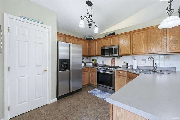 - Breakfast Bar, Ceiling Fan(s), Ceilings-Vaulted, Closet(s) Walk-In, Deck Open, Dishwasher, Eat-In Kitchen, Garage Door Opener, Main Floor Laundry, Open Floor Plan, Porch Covered, RV Parking, Range-Gas, Refrigerator, Sump Pump, Tub/Shower Combination, Twin Sink Vanity, Water Heater Gas, Workshop