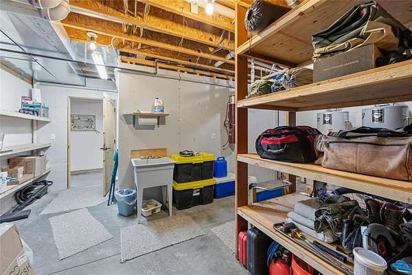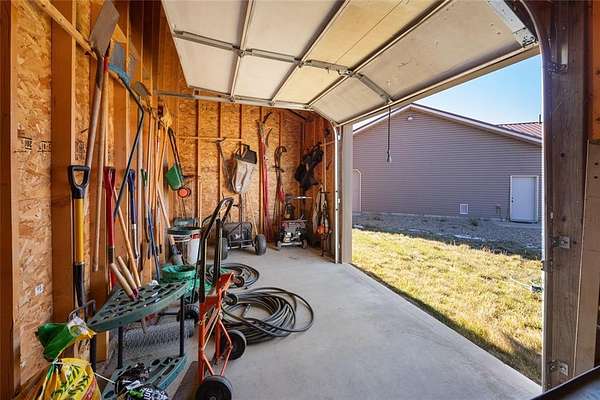 This exceptional 5-bedroom, 3-bath home sits on over 5 acres with sweeping mountain views and a beautiful mix of mature trees. The open-concept kitchen, dining, and living area creates a warm and inviting atmosphere, centered around a cozy woodstove. The spacious primary suite is a true sanctuary, featuring a large ensuite bath with a relaxing jetted tub. The finished basement adds even more living space with a generous recreation room and upgraded storage/utility room including 2 hot water heaters. Outside, functionality meets flexibility. The attached 1500 sqft garage includes a pull through bay and built-in dog kennel. An additional utility shed and greenhouse provide excellent options for storage, gardening, or small-scale homesteading. Zoned for horses and NO HOA! The stunning custom log staircase is crafted from natural timber, featuring thick solid-wood treads, rustic log railings, and a sculpted newel post that makes it a true architectural centerpiece with warm, lodge-style charm. Hand carved, live edge wood trim adds to the beauty.
