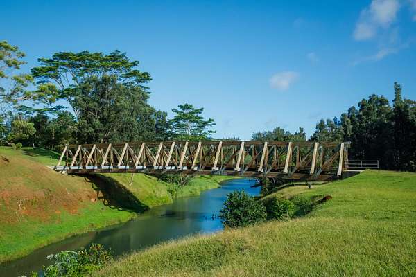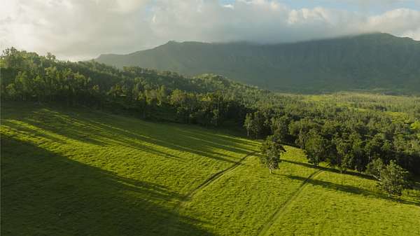 Est $63,108/moAt the base of Mount Namahana, Halaulani spans more than sixty-three acres of rolling pastures, forest edge, and stream valley on Kaua'i's North Shore. Accessed by a private truss bridge, the property unfolds across open meadows, ridgelines, and valleys bordered by thousands of feet of deep-flowing, swimmable stream. The land features broad pastures, a mature eucalyptus grove, and varied riding terrain with panoramic mountain views. A historic stone dam and established water features highlight the land's natural character and scale. Halaulani offers a rare combination of size, beauty, and seclusion in one of the North Shore's most scenic settings. It is a landscape shaped by water, land, light and sky; quiet, natural, and enduring.