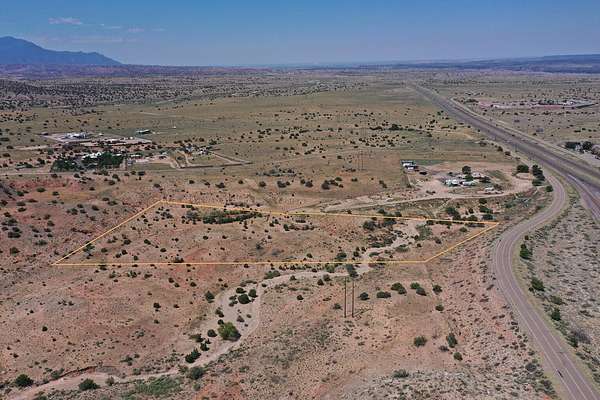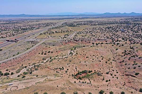 PRIME I-25 FRONTAGE at Exit 257 - this is the opportunity you've been waiting for! 6.99 acres of pure potential with stunning Sandia andOrtiz Mountain views. Zoned Rural Residential Agricultural but here's the magic -covenants allow commercial use and there are virtually no restrictions! Perfect for developers or individuals wanting space and freedom. Gently sloping terrain works beautifully for horses, livestock, or your next big project. Owner already graded agravel access drive directly off the I-25 south East Frontage Road with established right of way per plat. Infrastructure is ready - overhead electric and phone just 1/4 mile west, nearby wells around 600 feet deep. Staked survey and CCRs available for your review. Nearly 7 acres of I-25 frontage with endless possibilities!