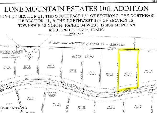 LONE MOUNTAIN ESTATES 10TH ADDITION AVAILABLE NOW to build your home on acreage and pick your finishes. This high quality home features 3471 square feet with an attached 3 car garage and asphalt driveway and is situated on a 4.78 acre lot. This open floor plan offers 4 bedrooms, 4 bathrooms plus a bonus room. The living room has vaulted ceiling, gas fireplace w/mantel and rock accents. The open kitchen with island, granite counters, and walk-in pantry. The master suite has a walk-in tiled shower, spacious walk-in closet and gorgeous bathroom featuring dual sinks. Enjoy amazing wildlife from your covered patio in own backyard. Conveniently located & just a few minutes North of Hayden.