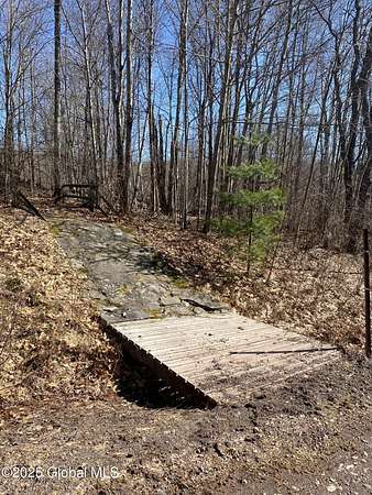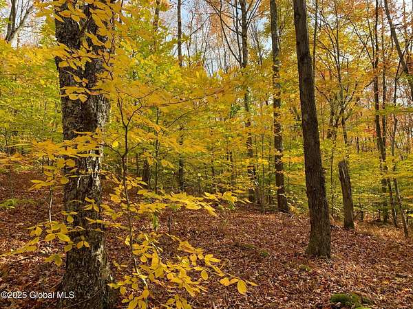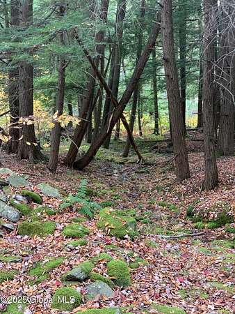 This serene 5+ acre wooded lot, located on a town-maintained cul-de-sac offers privacy just minutes away from conveniences. Charming shops & restaurants less than 10 min. Belleayre and Plattekill Ski areas 30 min away. The property is fully wooded with a gentle westward slope and stone walls. Community access to Alder Pond provides fishing and boating. Plus, electricity & fiber optic cables are readily available along the road. The property has been perc tested. A prime building site has been cleared. A leveled driveway offers access to the cleared campsite, a 16' x 20' larch wood platform on cement piers and a stone fire-pit. Architectural plans for a 3-bedroom, 2200 sq/ft modern home & septic plans are available upon request. Lot 6, 5+ acre parcel is also available!