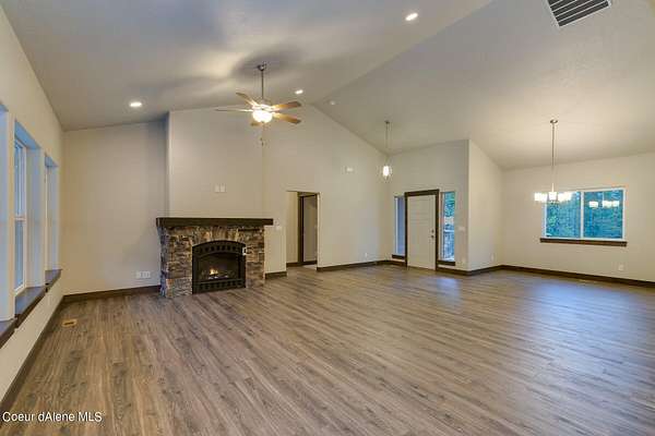 WALKING HORSE ESTATES - AVAILABLE NOW. Choose from any of our custom floor plans in this premier North Idaho acreage community. This stunning 2,549 sq. ft. custom home sits on nearly 5 acres and includes an attached 3-car garage. The inviting layout offers 3 bedrooms, 2 bathrooms, and a versatile bonus room. A large vaulted living room with a stone-accented gas fireplace creates a warm centerpiece, while the open kitchen features an island, granite countertops, and a walk-in pantry. The master suite is a true retreat with dual sinks, a tiled shower, and a spacious walk-in closet. Perfectly located near Farragut State Park for endless recreation, close to Lake Pend Oreille, and just minutes from the Bayview boat launch, Walking Horse Estates offers both luxury and lifestyle. ***File photos may show upgrades.