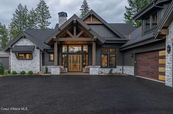 Luxury Northwest Retreat on Forested Acreage in Bennett Estates. The Bryce blends timeless craftsmanship with rustic elegance on a beautiful private parcel just minutes from town. Built by an award-winning builder, this thoughtfully designed home offers 3,631 sq ft, 3 bedrooms, 3.5 baths, den & family room with desirable main-level living including two ensuite bedrooms. Private guest suite with full bath and family room above the garage. Stunning details include cedar fascia, timber and masonry accents, hardwood floors, 8ft solid core doors, Anderson windows, and dramatic floor-to-ceiling masonry fireplace. Chef's kitchen with custom cabinetry, oversized island, quartz counters, walk-in pantry and Thermador appliances. Luxurious primary suite with soaking tub and tiled walk-in shower. Huge covered patio, oversized 3-car garage, paved driveway and landscaped grounds. Paved public maintained rd, Fiber optic internet, natural gas and private 25 GPM well. Shops, barns & livestock allowed.