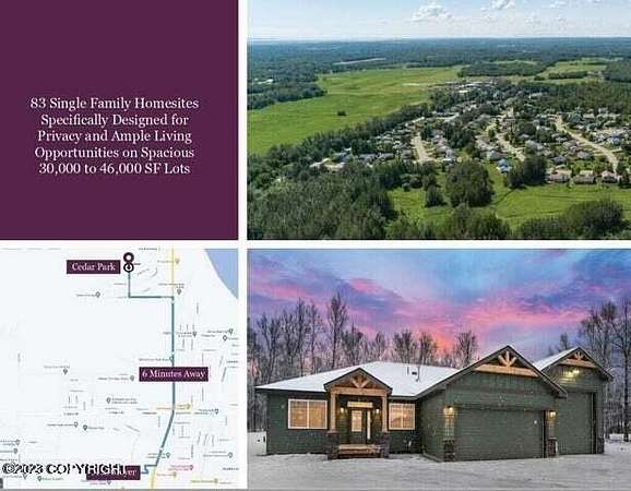 Est $705/moCHOOSE YOUR LOT & CHOOSE YOUR BUILDER! 341' deep homesite with western exposure located on a quiet cul-de-sac lot. City of Palmer maintained paved roads with electric and gas hook ups onsite. Just 5 minutes to Fred Meyer, 14 minutes to Mat-Su Regional Hospital, 37 minutes to JBER and 50 minutes to downtown Anchorage. Owner financing available. Call for details.