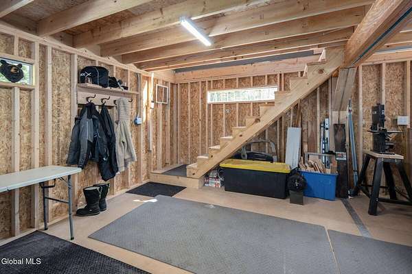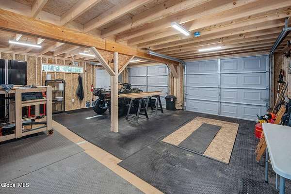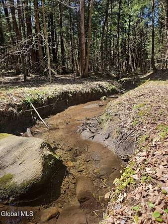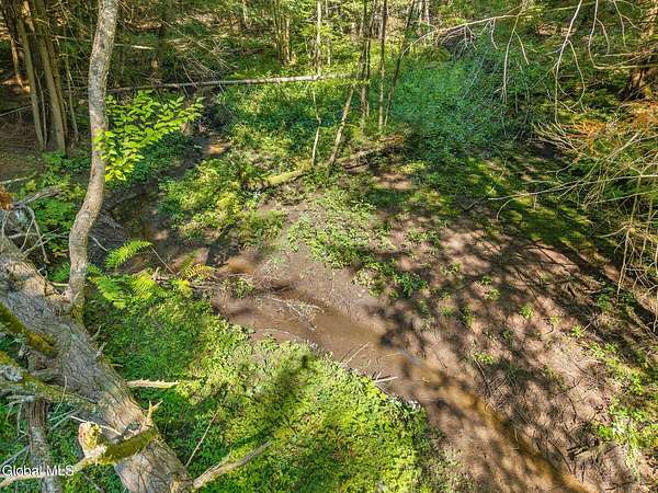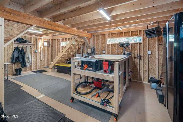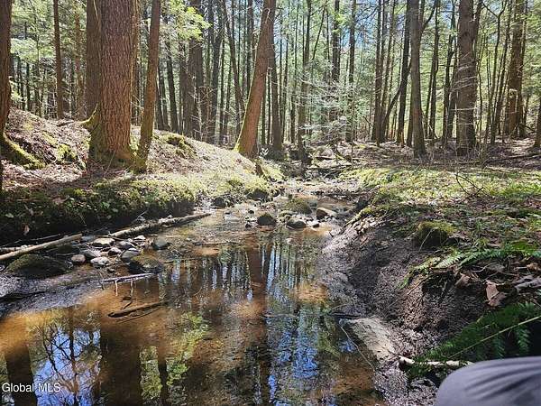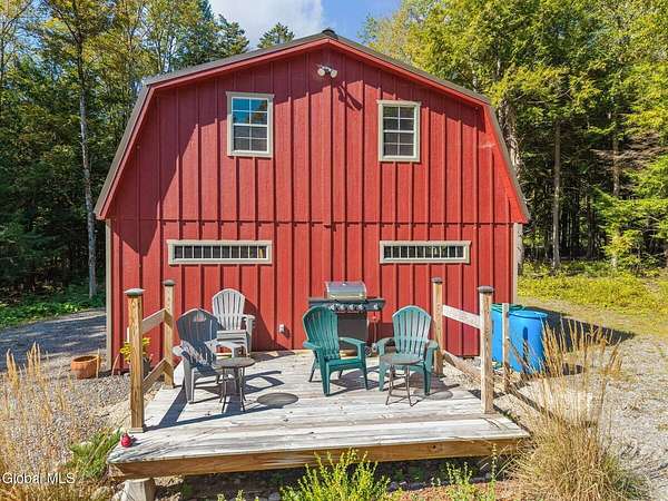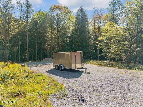 A haven for recreation and nature enthusiasts, this property is situated directly across from snowmobile and ATV trails. Spanning 20 acres, it features a mix of hardwoods and softwoods, a year-round brook, and trails. The two-story garage, constructed by Amish craftsmen, includes a finished second floor, making it an ideal retreat for hunting, snowmobiling, ATV riding, or enjoying the tranquility of the surroundings. Notable features of this property include: 200-amp electric service, Verizon Fios connectivity, a 240-volt heater, ship-lap dormers, laminate flooring, a stone fireplace with an electric insert, a small efficiency kitchen area, a 12x12 ft deck, a wrap-around driveway, recessed lighting, and an abundance of electrical outlets. No well or septic system, these can be installed.