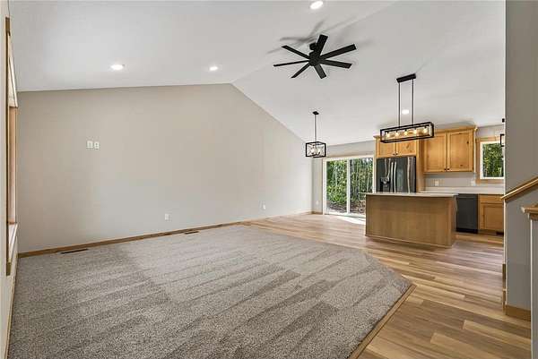 Inside, you'll find high-quality finishes, including knotty alder solid panel doors and trim, custom cabinets, and quartz countertops throughout. The home features Thermal Tech windows and durable 20 mil LVP flooring, ensuring both comfort and style.