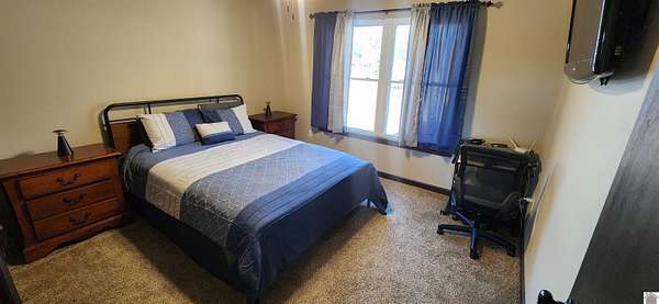 Custom home situated on 4.6 acres, offering sustainable living with all of the modern comforts. Built in 2022, this 2-bedroom, 2-bath home features a split floor plan, spacious bedrooms, and open living space. The main bedroom en' suite boasts a walk-in tile shower and large closet. Home is extremely energy efficient with spray-in insulation and solar system with 100 amp grid bypass! The attached garage is fully insulated with spray-in insulation, drywalled, and temperature-controlled with its own mini-split, making it suitable for additional living space, office space, or hobby use. The insulated 30x40 shop, built in 2023, features a concrete floor and operates completely off-grid with solar power. The home is solar powered with the ability to switch to the electric grid when necessary. Well suited for a full-time residence, weekend retreat, or hunting lodge.