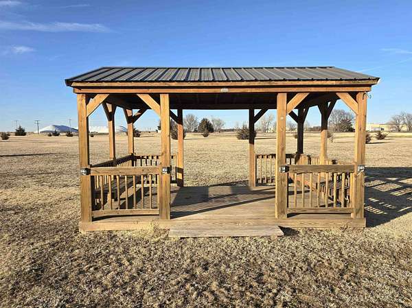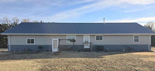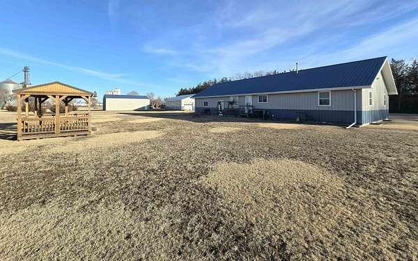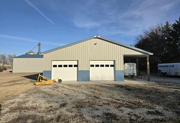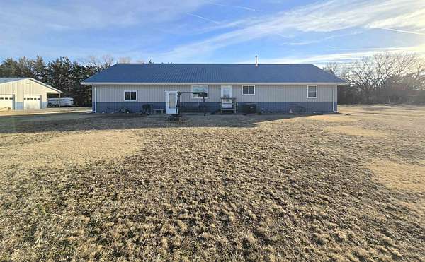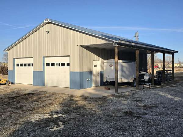 Country living on the edge of the town of LaCrosse. This home sits at the north end of Pine St and provides a multitude of opportunities. The home itself consists of two bedrooms and one and a half baths featuring ADA sized doors, with a full unfinished basement that could easily be finished as one desires or use as storage. In addition there is a 33`x25`7" heated attached garage. The exterior of the 6.3+/~ acre property allows for plenty of room to roam or relax in the gazebo or covered front deck. Just a stones throw from the home you will find a 30`x40` heated shop with 8` doors, concrete floor, 220 outlets, and 30 and 50 amp outlets for campers under the attached lean to. A second 40`x50` shop also features 12` doors and a concrete floor, perfect for storage of campers or equipment. For more information on what all this property has to offer, call/text Tim Cossaart with REMAX Pro at 785~639~6395..