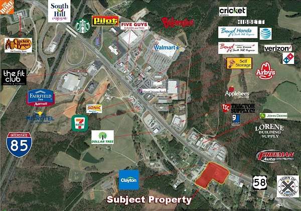 Est $11,054/mo5.36 acres zoned B3; CENTRAL BUSINESS DISTRICT with road frontage on Highway 58 East AND Old Highway 58 with an Annual Average Daily Traffic volume of 22,000 per VDOT 2020 on Highway 58. See attached permitted uses, less than 1 mile to Interstate 85, 17 Miles to Microsoft Data Center Boydton, and just minutes from other Microsoft Data Center sites. 5.2 Miles to VCU Community Memorial Hospital, 14 miles to VA/NC state line. 3.7 miles to Regional Airport,