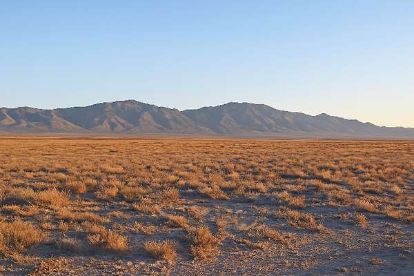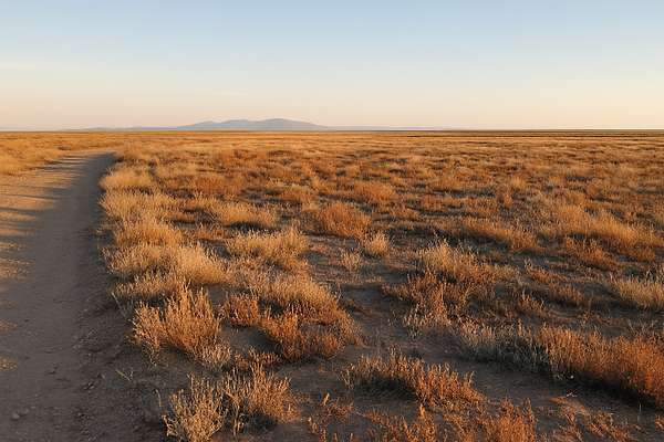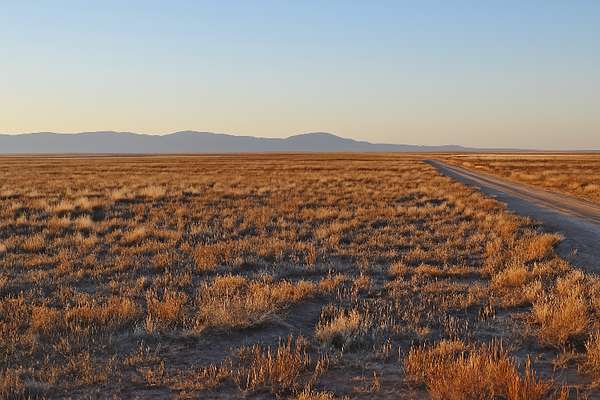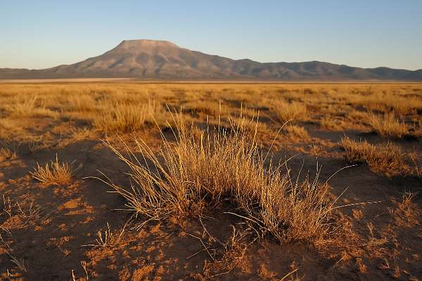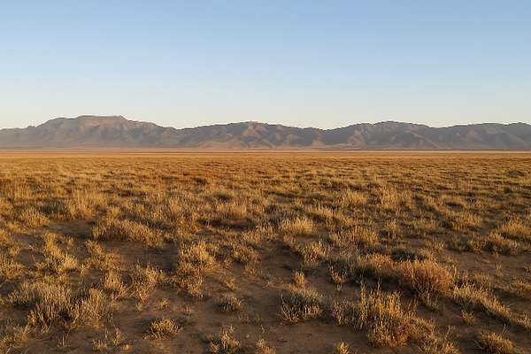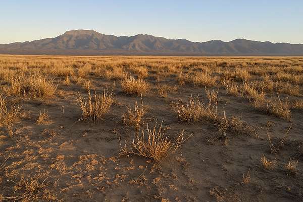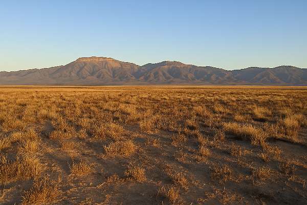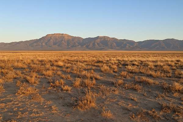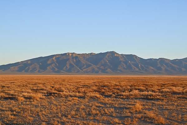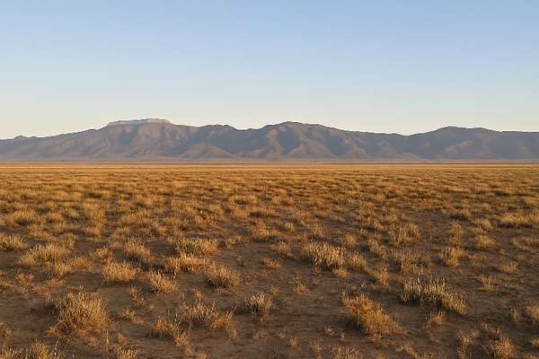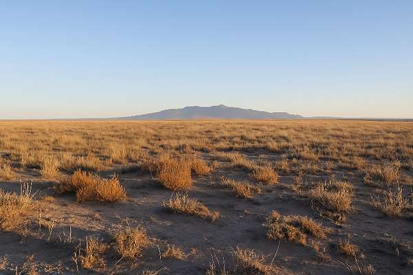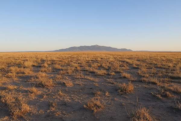 Flat high desert, light desert scrub, gentle slope, and open sky views toward the Manzano Mountains.