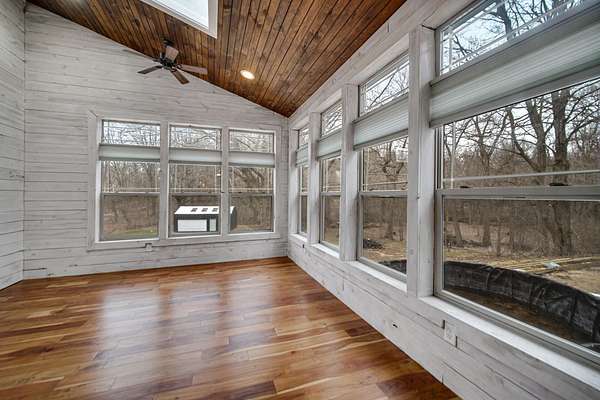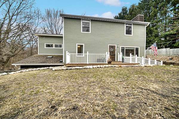 Perfectly designed for multigenerational living, this exceptional five-bedroom, three-bath, two-story home with a finished walk-out basement is quietly nestled on 2.18 picturesque acres. This home was completely transformed in 2016 with extensive top-to-bottom renovations including the addition of a basement and sunroom. The main level showcases a beautifully updated kitchen with quartz countertops, stainless steel appliances, and seamless hardwood flooring flowing through the living and dining areas. A modern scullery/laundry space keeps everyday living organized and clutter-free. The sunroom offers breathtaking views of wildlife and surrounding nature, creating a peaceful retreat year-round. A dedicated home office--easily convertible to a sixth bedroom--is conveniently located adjacent to a full bath. Upstairs, three generously sized bedrooms accompany a spa-inspired bath featuring a double sink vanity, soaking tub, and tiled shower. The walk out lower level expands living space with a generously sized family room, 2 additional bedrooms, full bath, and kitchenette--ideal for guests or extended family. Recent 2025 improvements include a Kohler whole-house generator, 20x32 outbuilding, second driveway added, new water heater, updated window treatments, new front walkways, front porch and side patio with retractable SunSetter awning. The scenic acreage features wildlife, fruit trees, and a dedicated garden area--offering privacy, functionality, and natural beauty in one remarkable property. Schedule a showing today!