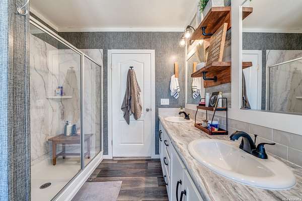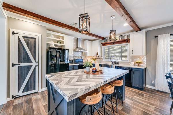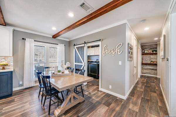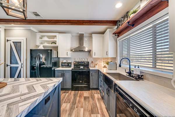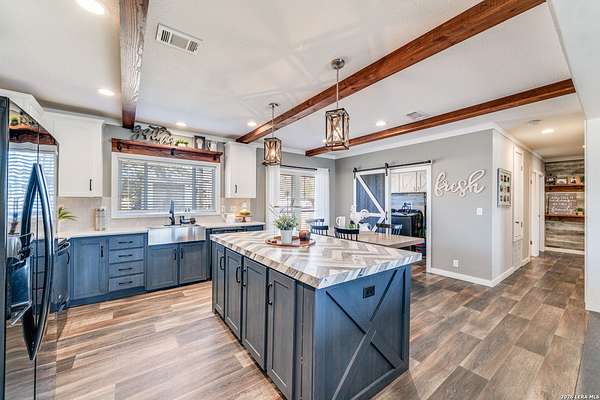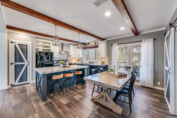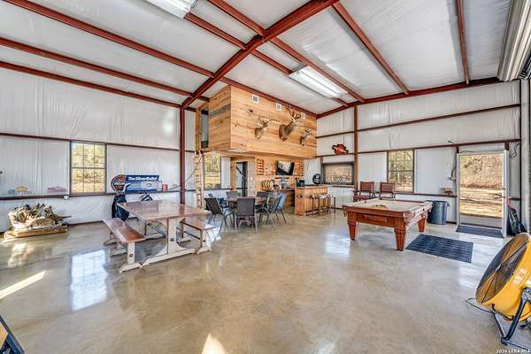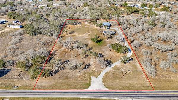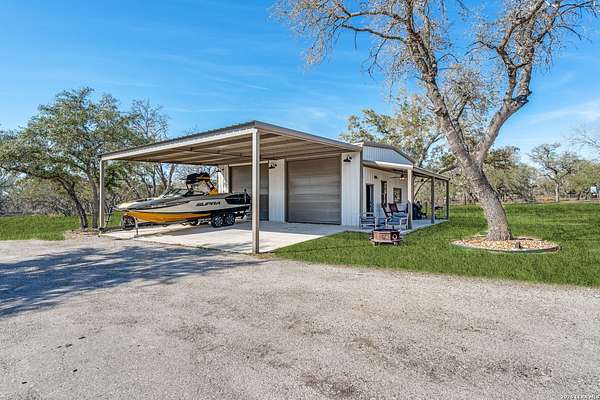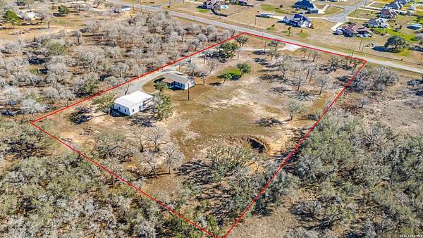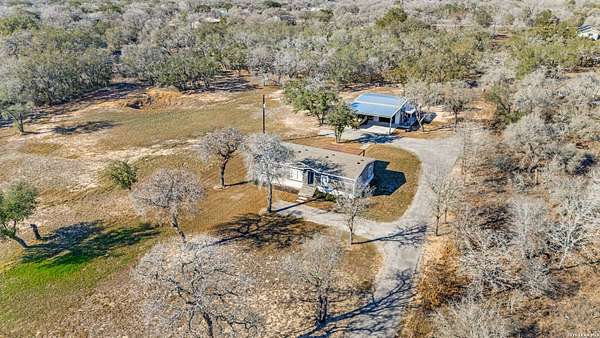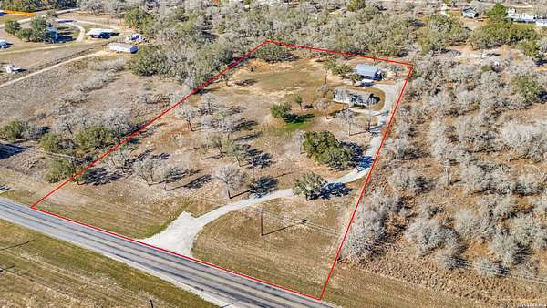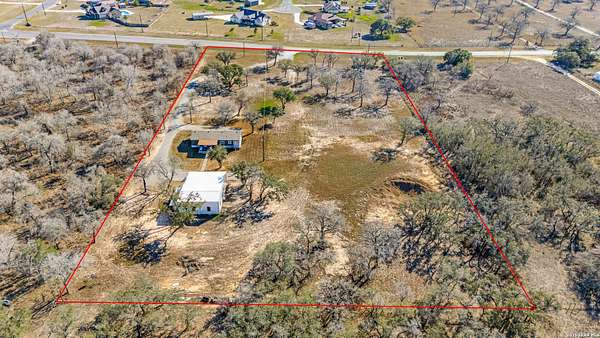 Situated in sought-after La Vernia ISD, this unrestricted 5-acre property offers endless possibilities for residential, multi-family, or commercial use - with an approved county variance already in place to divide into two 2.5-acre parcels. The spacious 4-bedroom, 2-bath home features a functional layout and an attached covered back patio, perfect for relaxing or entertaining while enjoying wide-open country views. A standout feature of the property is the impressive 30x40 workshop/man cave complete with central A/C and heat, two roll-up bay doors, and an unfinished bathroom with plumbing and electrical already in place - ready for your finishing touches. An attached 30x20 covered carport provides additional covered parking or workspace. With no restrictions and two water meters already on site, the opportunities are truly endless-residential, multi-family, commercial potential, rental units or sell off a portion while keeping the remainder. Rare combination of acreage, improvements, and versatility-schedule your showing today!